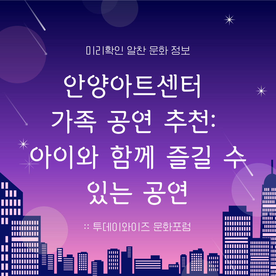 안양아트센터는 온 가족이 함께 즐길 수 있는 다양한 공연을 제공합니다. 😊 어린이들을 위한 재미있는 공연부터 온 가족이 함께 감동을 느낄 수 있는 공연까지, 이 가이드를 참고해 가족과 함께 특별한 시간을 만들어보세요!